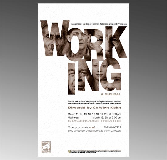 Design of catalog covers, district calendar, theater posters, brochures, mailers, class schedule covers.